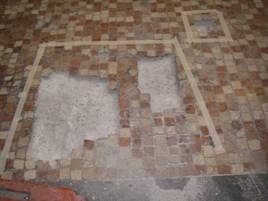 L’intervento ha previsto la rimozione delle precedenti stuccature in cemento e delle integrazioni con tessere musive non congrue o frammenti di marmo irregolari. Una volta rimosse le parti non idonee, si è proceduto all’integrazione delle lacune con tessere musive simili all’originale, al fine di uniformare il pavimento.